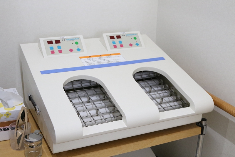 ベッドに横になって、紫外線をあてる治療です。尋常性乾癬や、類乾癬などの治療を行います。